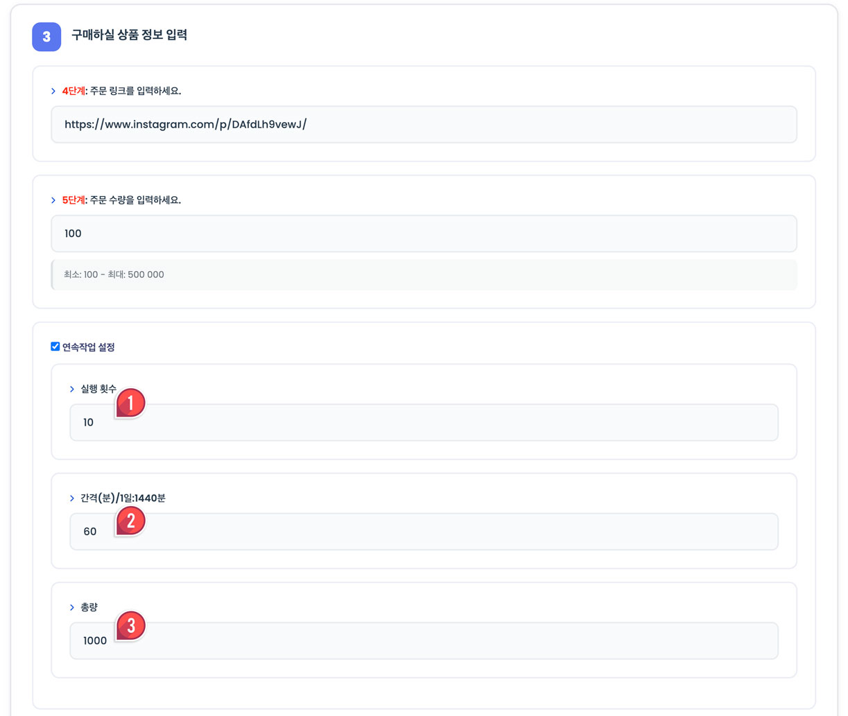 [방금 전] abc12*** 님이 인스타 팔로워 500명을 주문했어요!